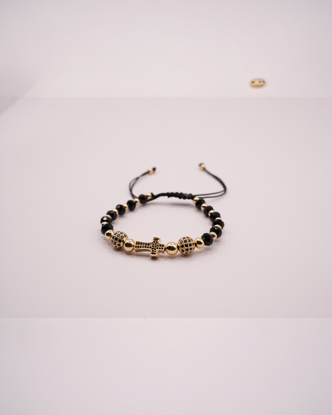 Realizată din oțel inoxidabil placat cu aur, brățara Cruce se evidențiază prin durabilitate și rezistență la uzură, păstrându-și strălucirea în timp. Combinația dintre tonurile aurii și mărgelele închise creează un contrast rafinat, potrivit atât pentru ținute casual, cât și pentru apariții elegante.