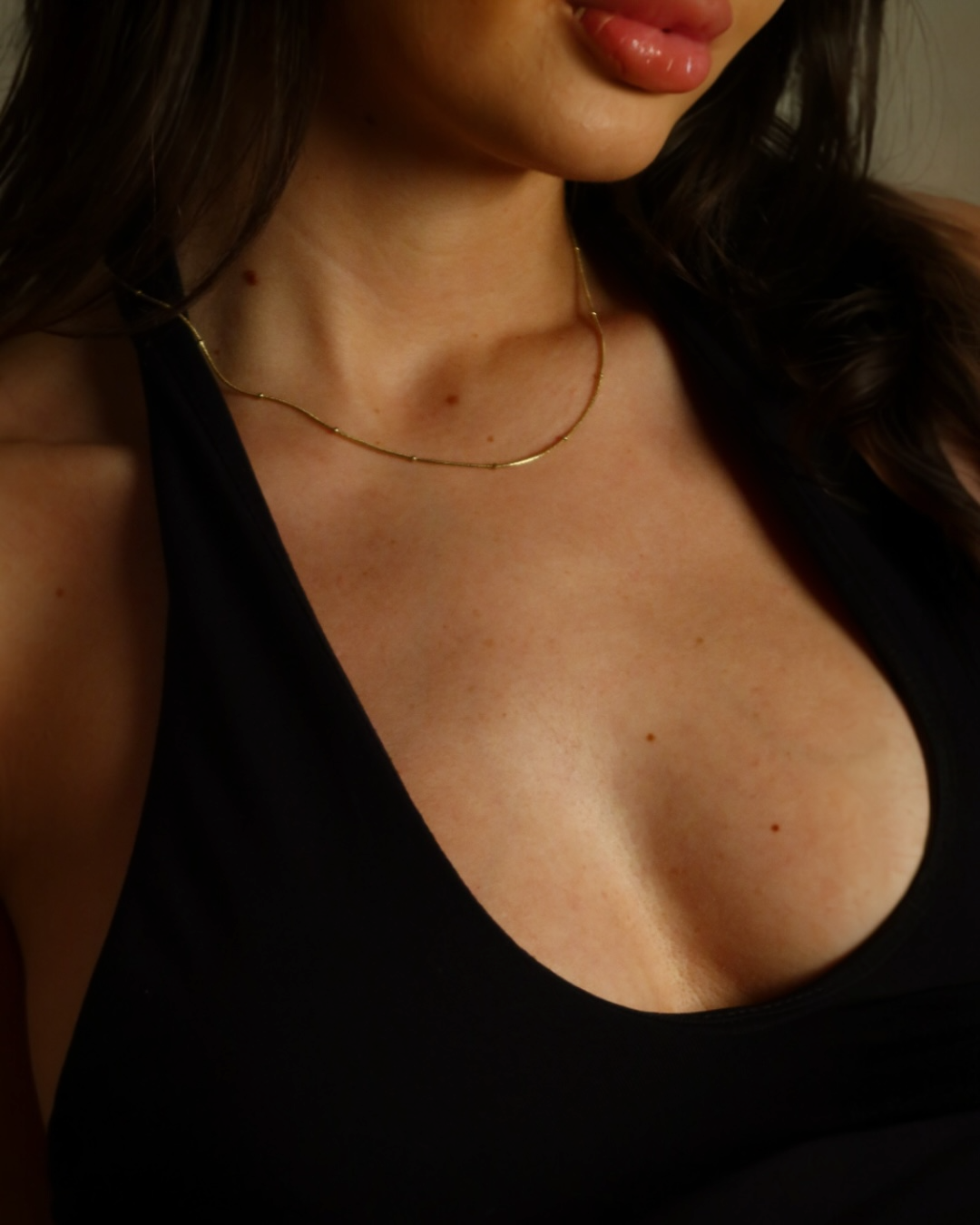 Modelul discret și sofisticat pune în valoare pandantivul purtat, creând un look elegant și feminin. Este alegerea ideală pentru femeile care preferă bijuteriile minimaliste, dar rafinate.