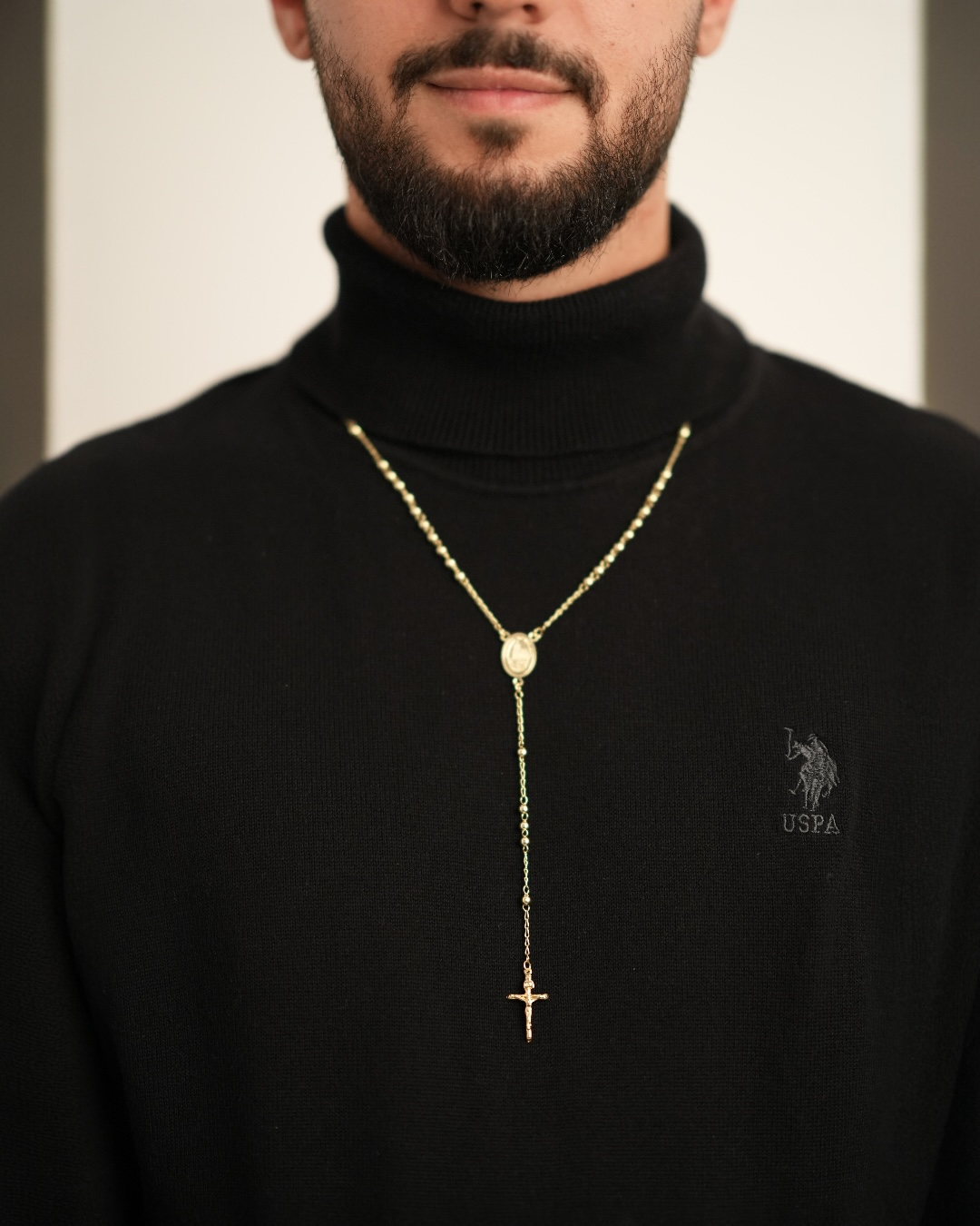 Realizat din oțel inoxidabil de înaltă calitate, placat cu aur, colierul Rosario este rezistent la uzură și oxidare, păstrându-și strălucirea și finisajul impecabil în timp. Tonul auriu adaugă o notă de noblețe și rafinament, făcându-l ușor de integrat atât în ținute elegante, cât și în purtări zilnice.