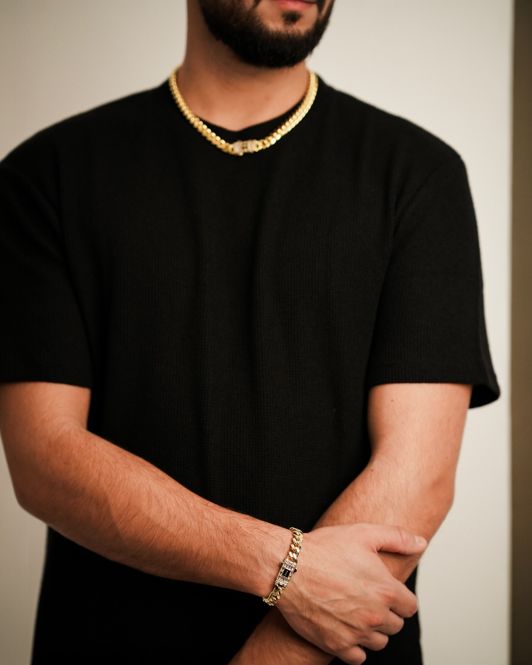 Format din colier și brățară de tip cuban, setul impresionează prin zale groase, bine definite, și finisajul auriu strălucitor. Realizat din oțel inoxidabil placat cu aur, Cuban Cielo garantează durabilitate, rezistență la uzură și menținerea aspectului impecabil în timp. Sistemele de închidere sunt solide, sigure și decorate discret, adăugând un plus de lux.