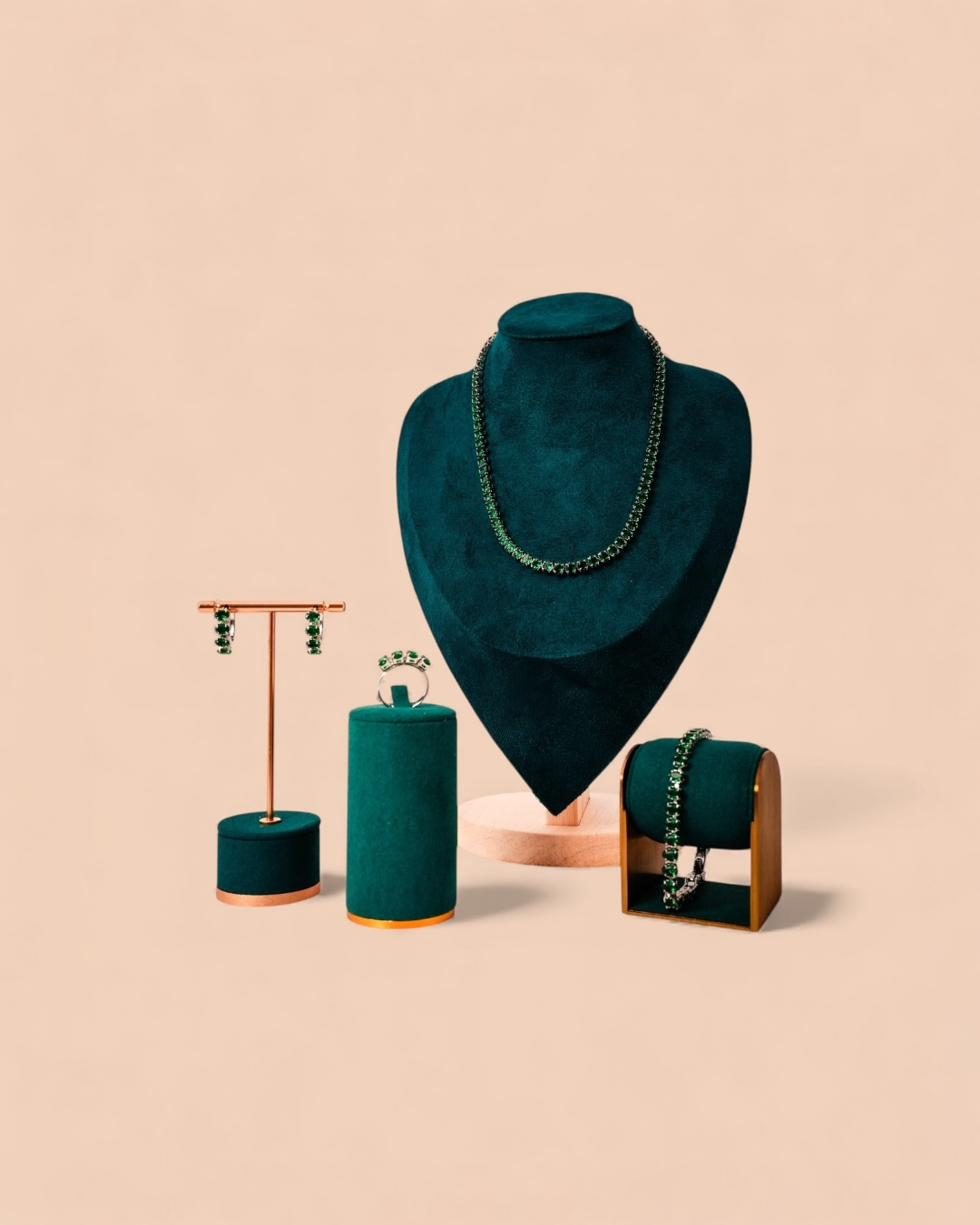 Set Tennis Verde Damă Oțel Inoxidabil Colier+Brățară+Cercei+Inel